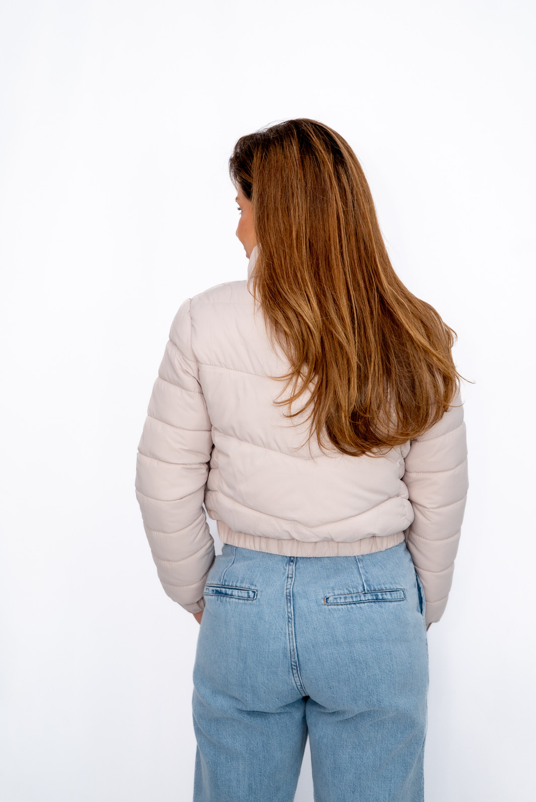 Jaqueta Curta Nylon sem Capuz Bege