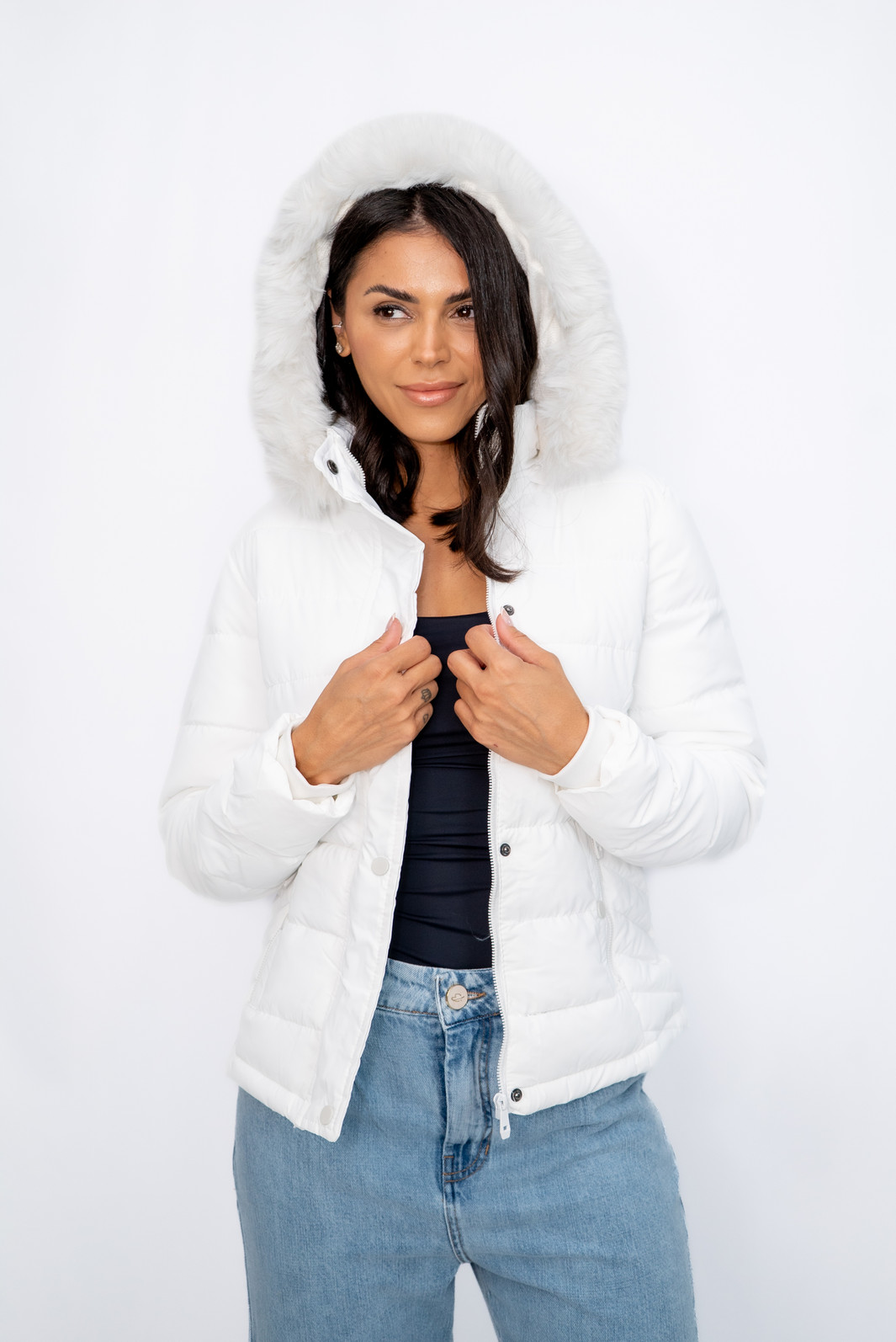 Jaqueta Nylon com Capuz Branca