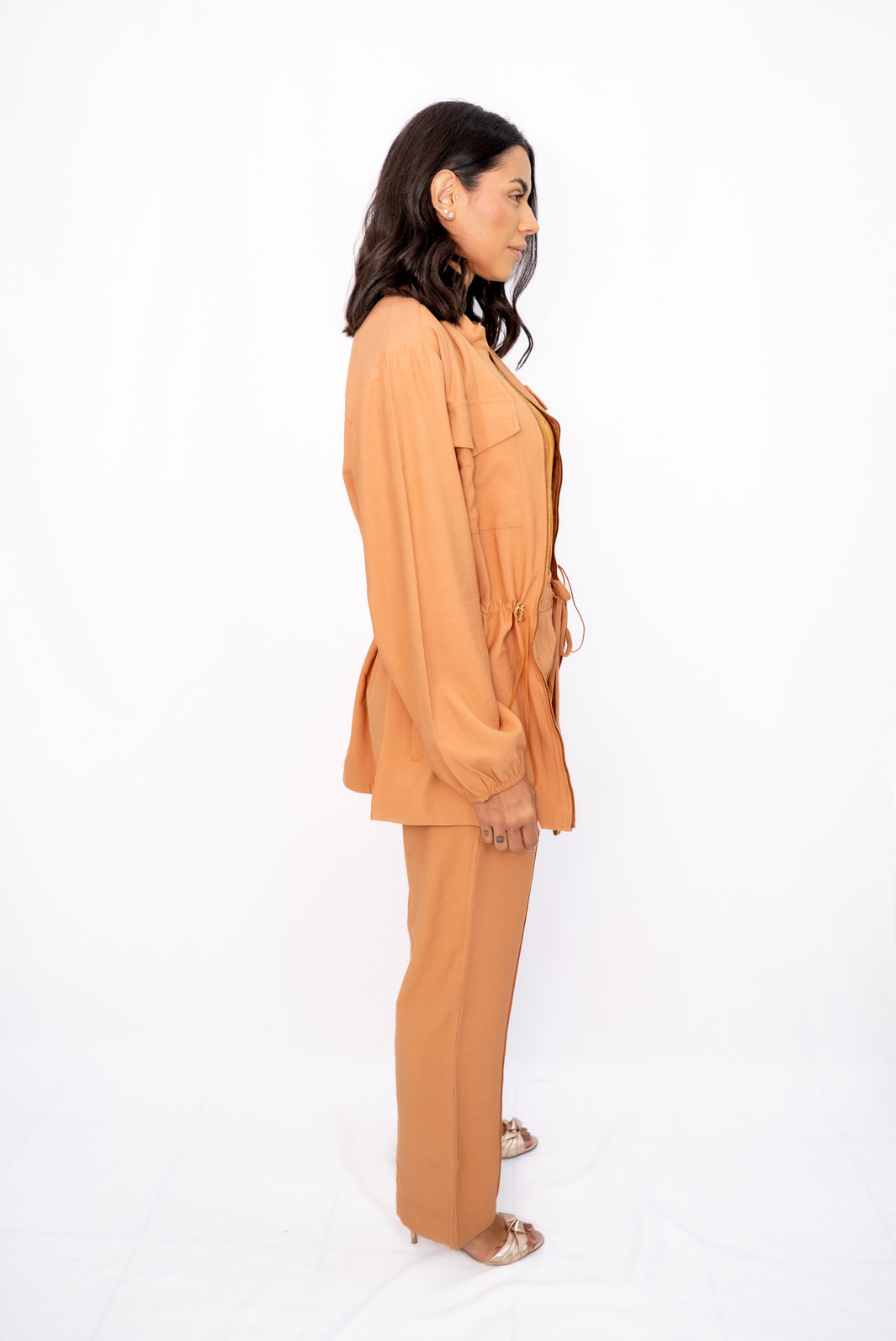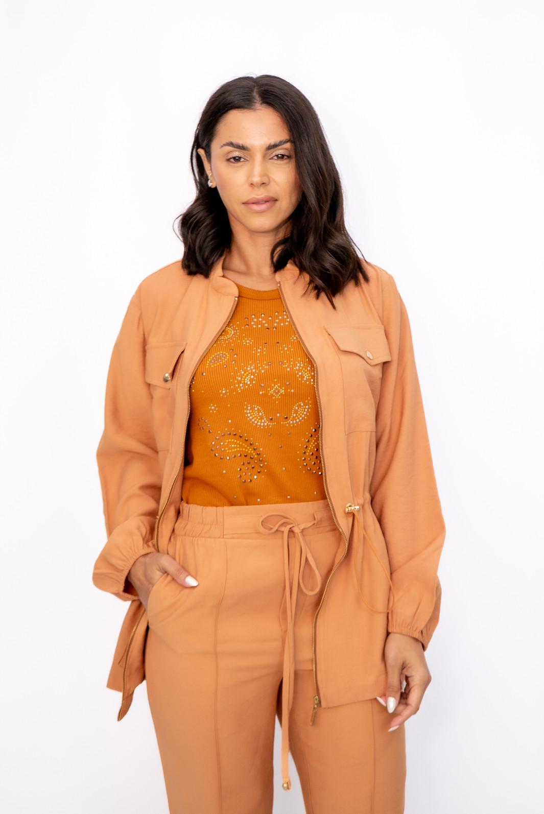 Parka com Ziper Frontal Caramelo Ramo Selvagem