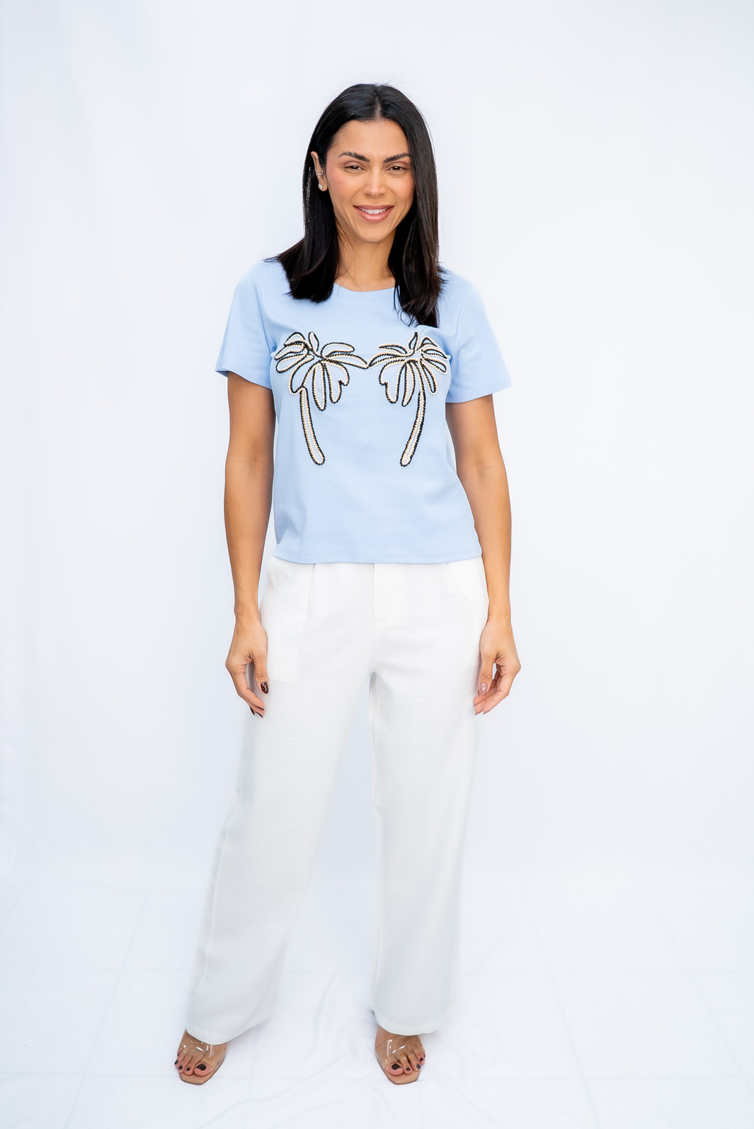 Tshirt Malha com Coqueiros Azul