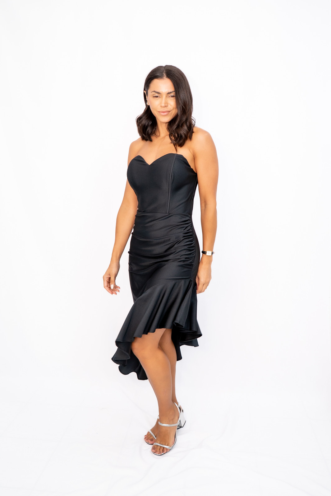 Vestido Midi Tomara que Caia com Babados Lateral Preto